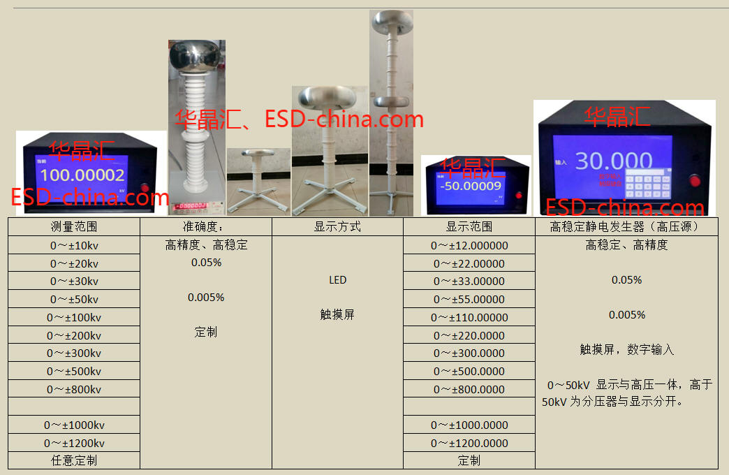 北京华晶汇科技有限公司作为“中关村高新技术企业”,成立20年来持续专注于自主研发,在实践中根据客户需求不断打磨创新产品,为满足更多客户对测试设备的高精度需求,北京华晶汇最新研发出ESDEMC ® ESDEMC ®EST106高精度高压表的主要特点是输入阻抗极高,几乎对被测量对象没有影响,而且测量范围宽、准确度高。主要用于高电压测量,特别适用于测量小电流,高压,或内阻很高的静电发生器,同时适用于计量静电发生器、静电放电枪、静电高压表、非接触式静电电压表的高精度校准与测试等。